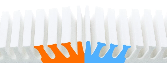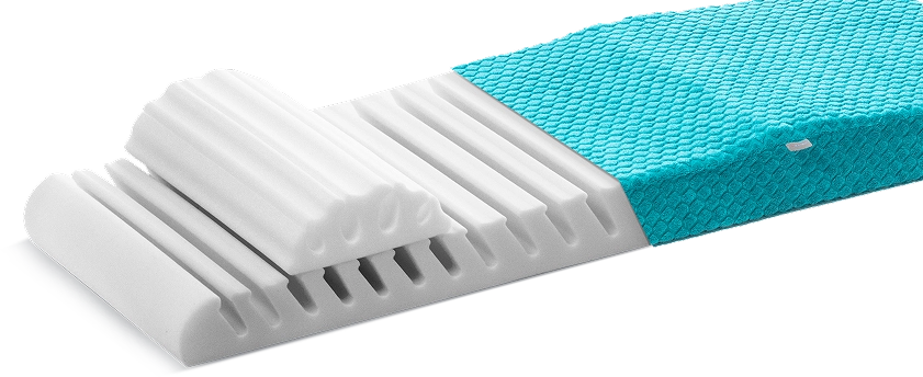 Конструкция ребер изготовлена из высокоэластичного пенополиуретана, свойства которого позволяют конструкции подстраиваться под контуры тела