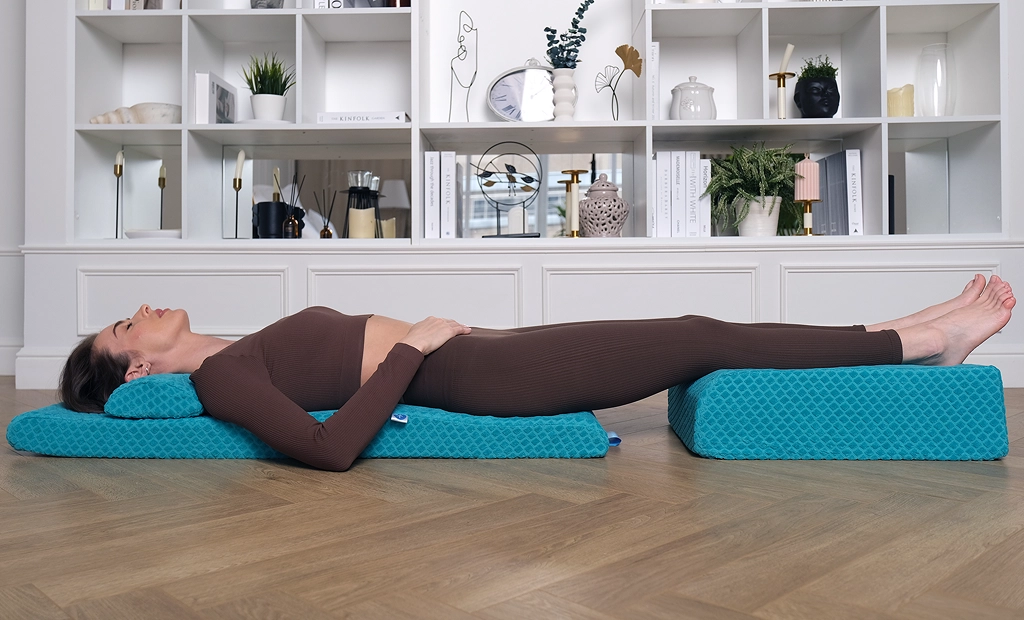 Когда Вы ложитесь на мат Детензор, ребра отклоняются и начинают перераспределять массу в сторону ног и головы, обеспечивая комплексное вытяжение мышц