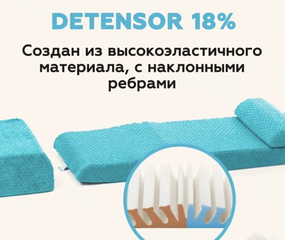 Конструкция ребер изготовлена из высокоэластичного пенополиуретана, свойства которого позволяют конструкции подстраиваться под контуры тела