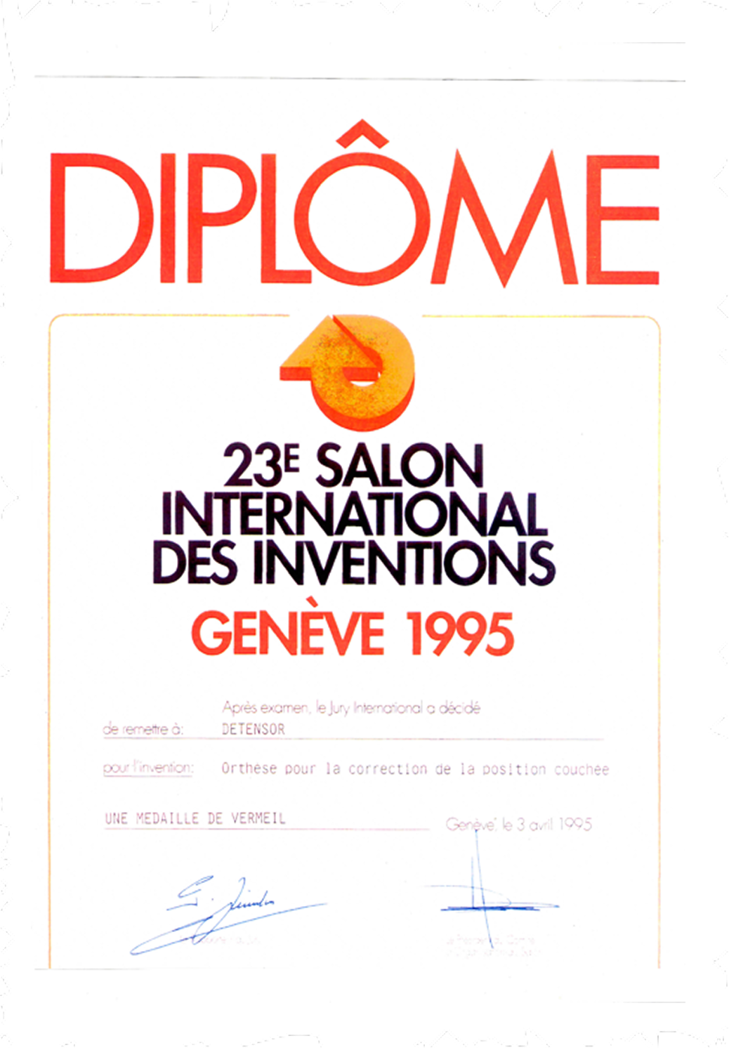 Международное жюри решением присудило награду за изобретение — ортез для коррекции положения лежа («Orthese pour la correction de la position couchée»).
