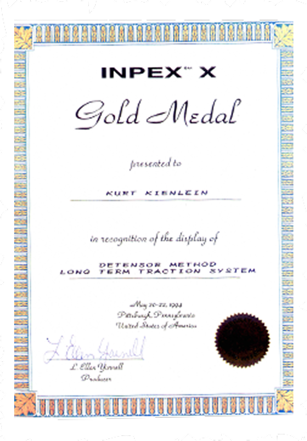 Серебряная медаль INPEX X. За признание экспозиции метода «Detensor Method Longterm Traction Therapy» (метод ДЕтензор-терапии, длительная тракционная терапия)