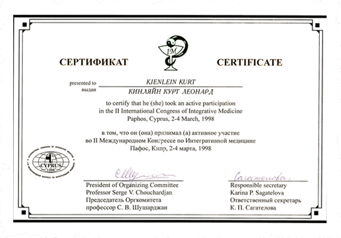 Организация: I International Congress of Integrative Medicine (II Международный Конгресс по Интегративной медицине)