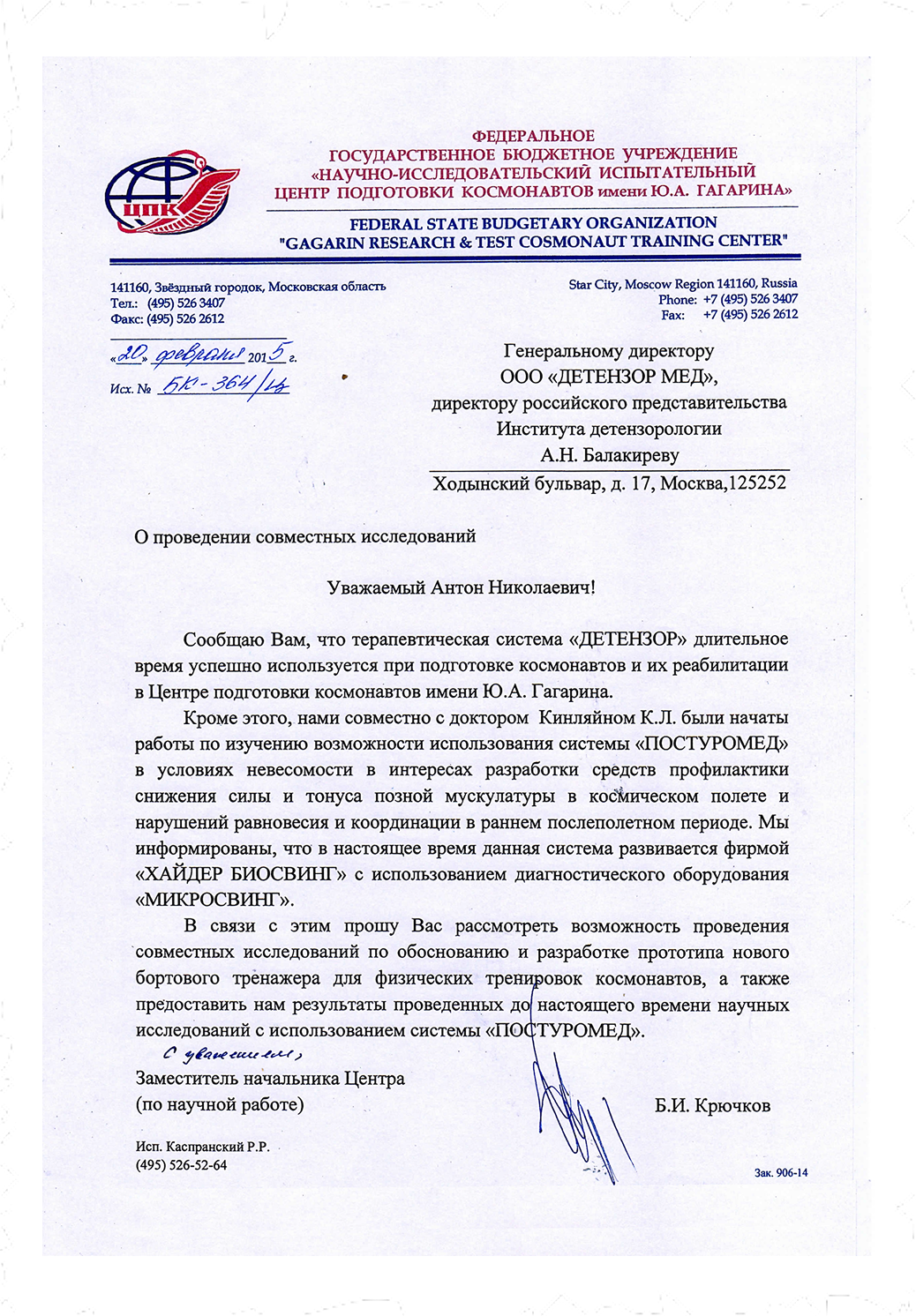 испытательный центр подготовки космонавтов имени Ю.А. Гагарина»