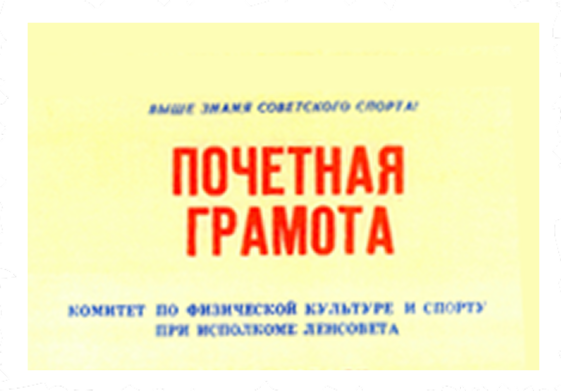 Почетная грамота Комитета по физической культуре и спорту при исполкоме Ленсовета.