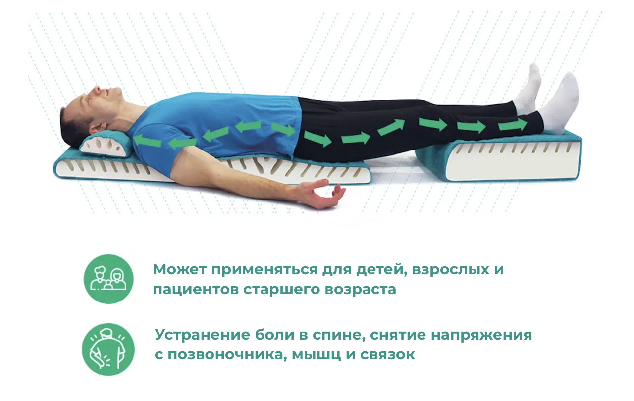 Применение метода способствует безопасной и комфортной релаксации, расслаблению мышц и щадящему вытяжению позвоночника для восстановления его функций.