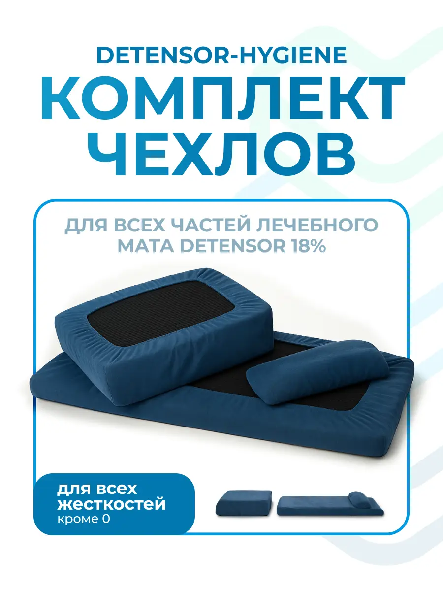 Комплект чехлов Detensor Hygiene предназначен для всех 3-х частей лечебного мата любой жесткости, кроме нулевой. Они защищают изделие от пыли и загрязнения в процессе эксплуатации, продлевая срок его службы. Это оптимальный вариант для домашнего и амбулаторного использования в больницах, санаториях.