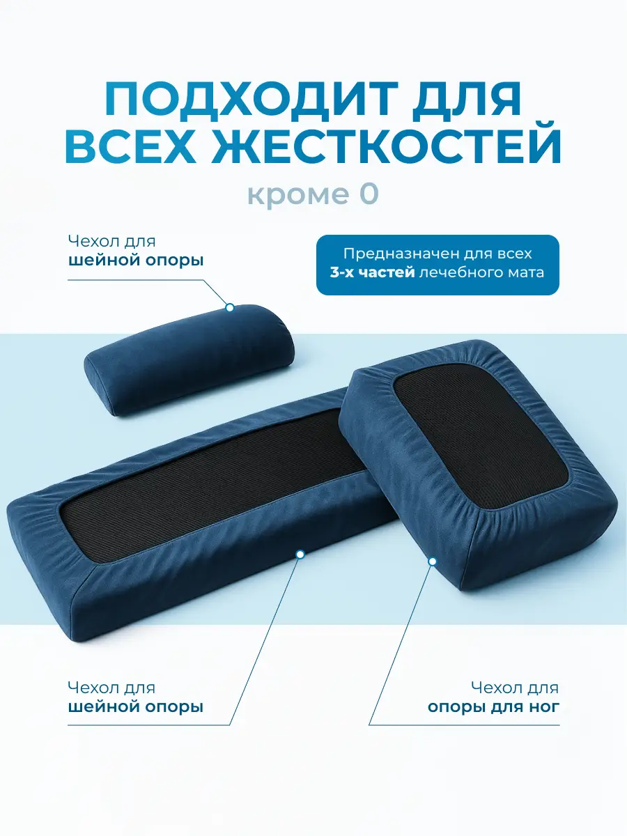 Для фиксации чехлов предусмотрены эластичные резинки. Они обеспечивают максимально плотное прилегание, поэтому ткань не сползает и не сминается даже во время продолжительного использования лечебного мата.