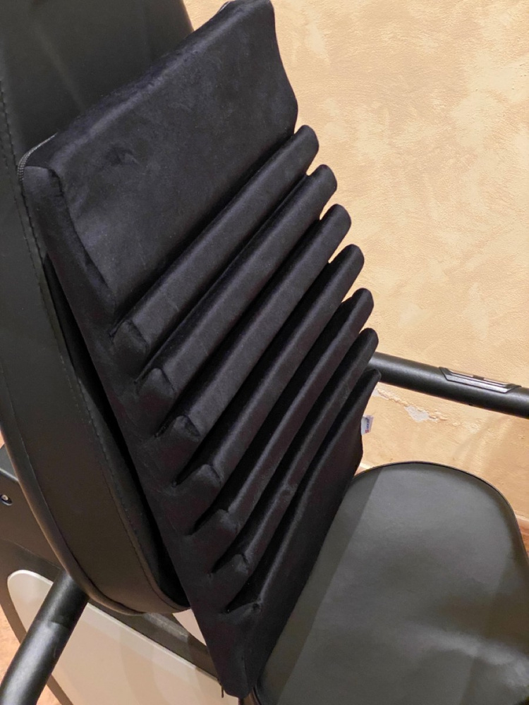 На первый взгляд предмет выглядит достаточно непривычно: ребристая поверхность и сначала кажется, что сидеть будет неудобно. Но это не так. Как раз за счет этих чудесных ребер и идет эффект, хорошая поясничная поддержка. Субъективно чувствуется снижение нагрузки на спину, возможно, что как раз за счёт расслабления мышц, не знаю, как правильно описать ощущения.