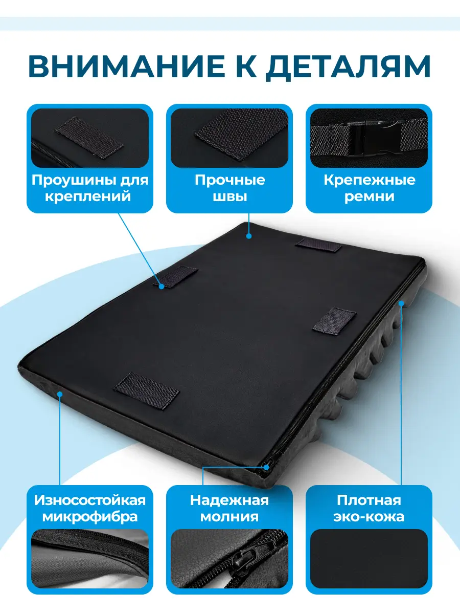 Для маленьких машина с небольшим сиденьем по бокам может в пазы не встать подушка. У меня джип, там подушка поверх чехла из овчины села чётко!