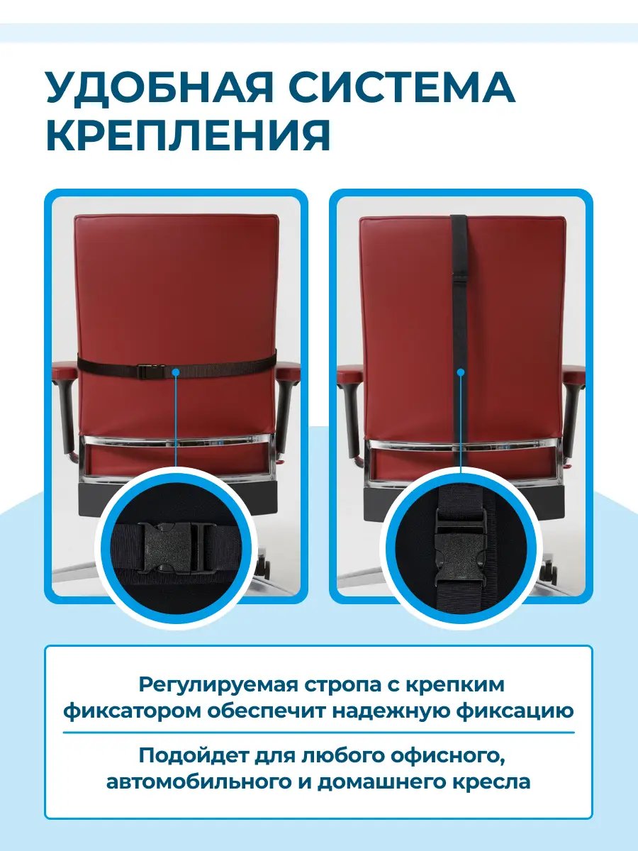 Ортопедическая подушка под спину Детензор скорректирует осанку и избавит от болей в поясничном отделе. Изделие повторяет изгибы позвоночника, а система ламелей создаёт максимальную площадь опоры и снижает нагрузку на позвоночник на 50%. При этом уменьшается давление межпозвоночных дисков, что приводит к улучшению питания дисков и восстановлению кровообращения околопозвоночных мышц. Ортопедическая подушка подойдёт для автомобильного или офисного кресла, создаст комфортные условия для будущих мам, поддержит здоровье спины в длительных поездках. Изделие крепится этикеткой вниз, способы установки зависят от вида кресла и подробно описаны в инструкции. Гарантия качества от производителя 2 года.