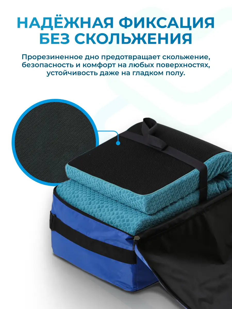 Мат можно положить на пол в любом месте, занимает немного места. Можно хранить и переносить в сумке, которая идёт в комплекте.