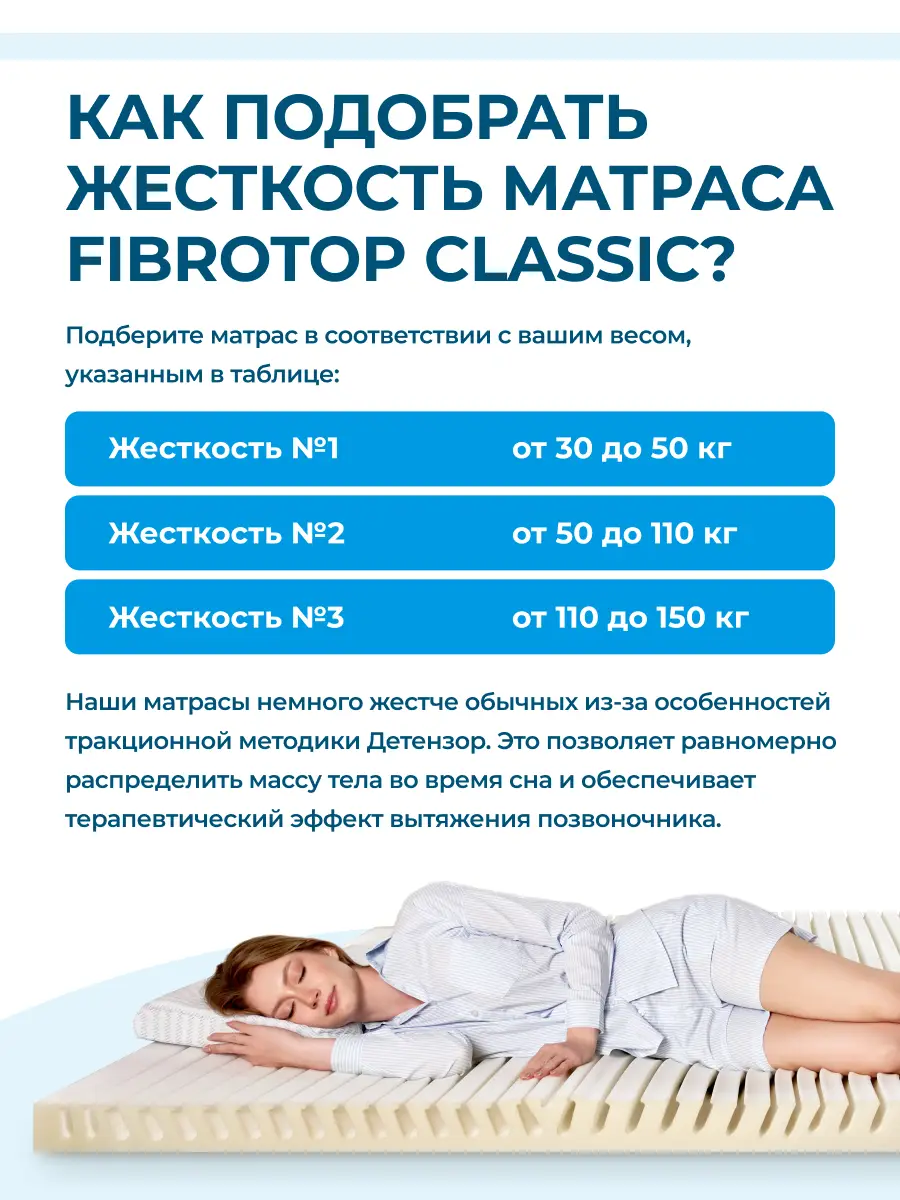 Терапевтический матрас Fibrotop Classic – это инновационное решение, разработанное на основе метода "Детензор"-терапии, который зарекомендовал себя как безопасный и эффективный способ расслабления мышц и мягкого вытяжения позвоночника.