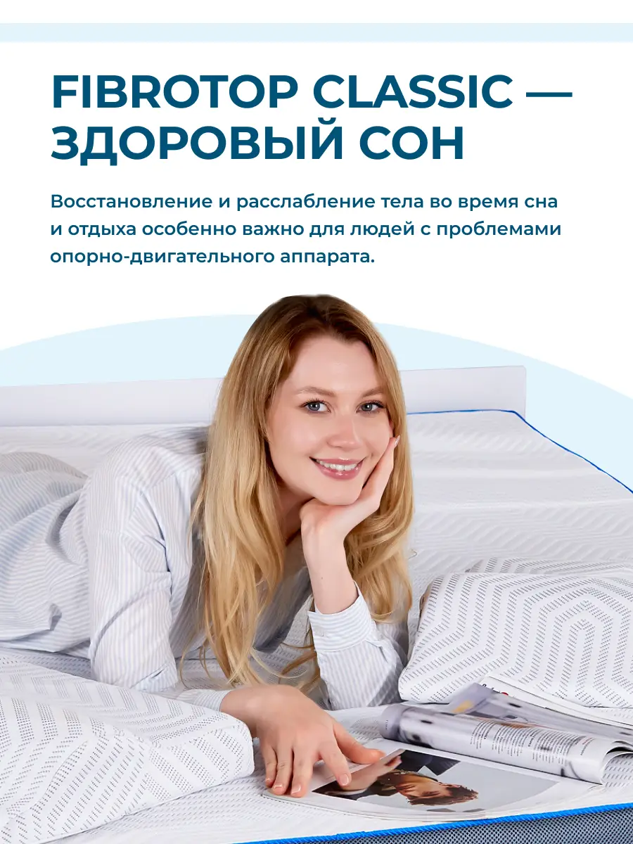 Fibrotop Classic имеет регистрационное удостоверение Росздравнадзора, что подтверждает его статус медицинского изделия. Это значит, что вы получаете продукт, разработанный для реабилитации, восстановления позвоночника и снятия напряжения. Спите спокойно, зная, что ваш выбор одобрен медицинскими специалистами.