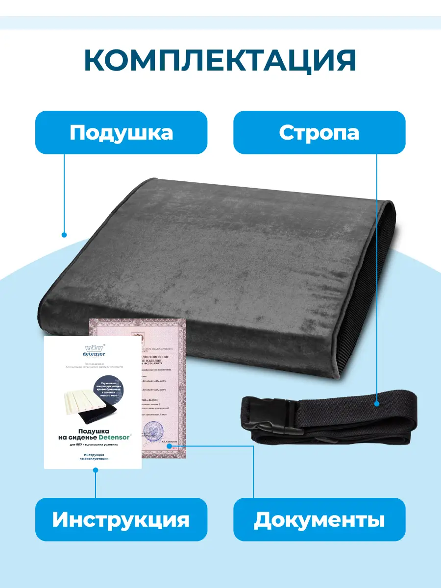 Комплект включает: подушка, чехол, ремень для фиксации, инструкция по эксплуатации, гарантийный талон и документы качества.