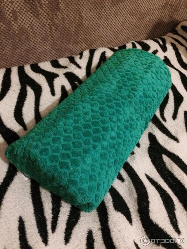 Когда сжимаешь валик, он очень быстро восстанавливает свой внешний вид. Продается изделие в специальном чехле, который снимается, и его можно постирать. Сам по себе он мягкий. Вызывает исключительно позитивные ощущения.