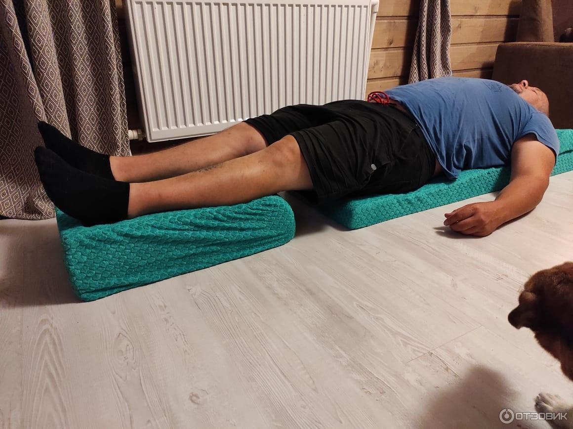 Вспомнил, что в своё время мне дали в санатории буклет с рассказом про каждую процедуру, и решил узнать, можно ли купить такой мат детензор домой. Нашел официальный интернет-магазин, там можно купить весь комплект. Цена, конечно, поначалу шокировала – если брать с чехлами, получается почти 60 тысяч. Но, в то же время, разве есть что-то дороже здоровья? Подумал с недельку, но понял, что нельзя рисковать собой. Влез в заначку, заказал. Мат приходит быстро. Его доставляют в пункт выдачи с возможностью проверки при получении. Всё было в порядке, приходит упакованным в плёнку, сумку-переноску, она довольно компактная. Внутри лежит подспинная и подножная часть мата, подножная причём гораздо выше подспинной, и валик под голову. Всё упаковано в чехлы. Если пощупать, чувствуешь, что внутри есть рёбрышки, за счёт них и обеспечивается вытягивающий эффект. Есть инструкция и дополнительные чехлы – я покупал, чтобы можно было стирать. Надевал прямо на основной чехол, потому что побоялся, что не смогу надеть обратно. И да, чехлы после стирки не садятся, но надеваются очень плотно, так что «упаковать» мат – тот ещё квест. Пользоваться можно до трех раз в день по 45-60 минут. Больше лежишь – быстрее желаемый эффект наступит. Как бы тяжело ни было, первое время именно так и поступал, старался выкраивать время, находить возможность, даже на работе запирался в кабинете и лежал. Жена тоже пробовала – очень интересное ощущение, как будто на водяном матрасе или вообще в воздухе. Расслабляешься, приятно становится. За счёт того, что все части «раздельные», всегда можно подогнать мат под свой рост. Я, например, 186, а жена 164. Подножную часть и валик я кладу себе ниже, а она – выше. И нам обоим подходит, и обоим удобно! Я целый месяц лежал на этом мате. Боли пропали. Чувствую себя отлично даже после напряженного трудового дня. Думали, что всё, мат больше не пригодится, но тут жена забеременела. Когда живот начал расти, нагрузка на поясницу стала колоссальной. Вспомнили про этот мат, стала лежать. Просто расслабляться. Жена говорила, что это ее спасение. Во-первых, просто полежав на Детензоре часик, она потом чувствовала себя отдохнувшей и свежей, как будто поспала несколько часов. А до этого постоянно жаловалась, что в обычной кровати из-за живота невозможно найти удобную позу. Во-вторых, спину действительно растягивает, улучшается осанка, она могла даже ходить на небольшом каблуке, и ноги со спиной не горели огнём к концу дня. Она уже, конечно, ленилась, 1-2 раза в неделю лежала, но разницу всё равно ощутила. В последние пару месяцев перед родами вообще по несколько часов на мате спала, не знаю, насколько это можно, но иначе просто была не в состоянии заснуть – неудобно, живот мешается, спину и все мышцы начинает тянуть…