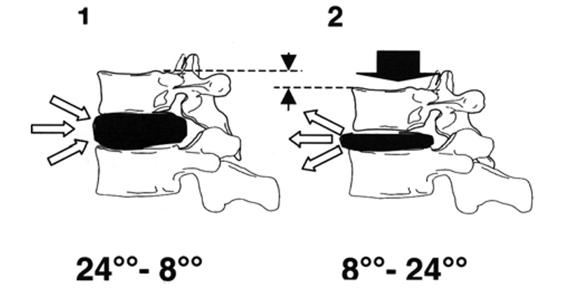 Рис.1. Схема регидратации и дегидратации межпозвонковых дисков