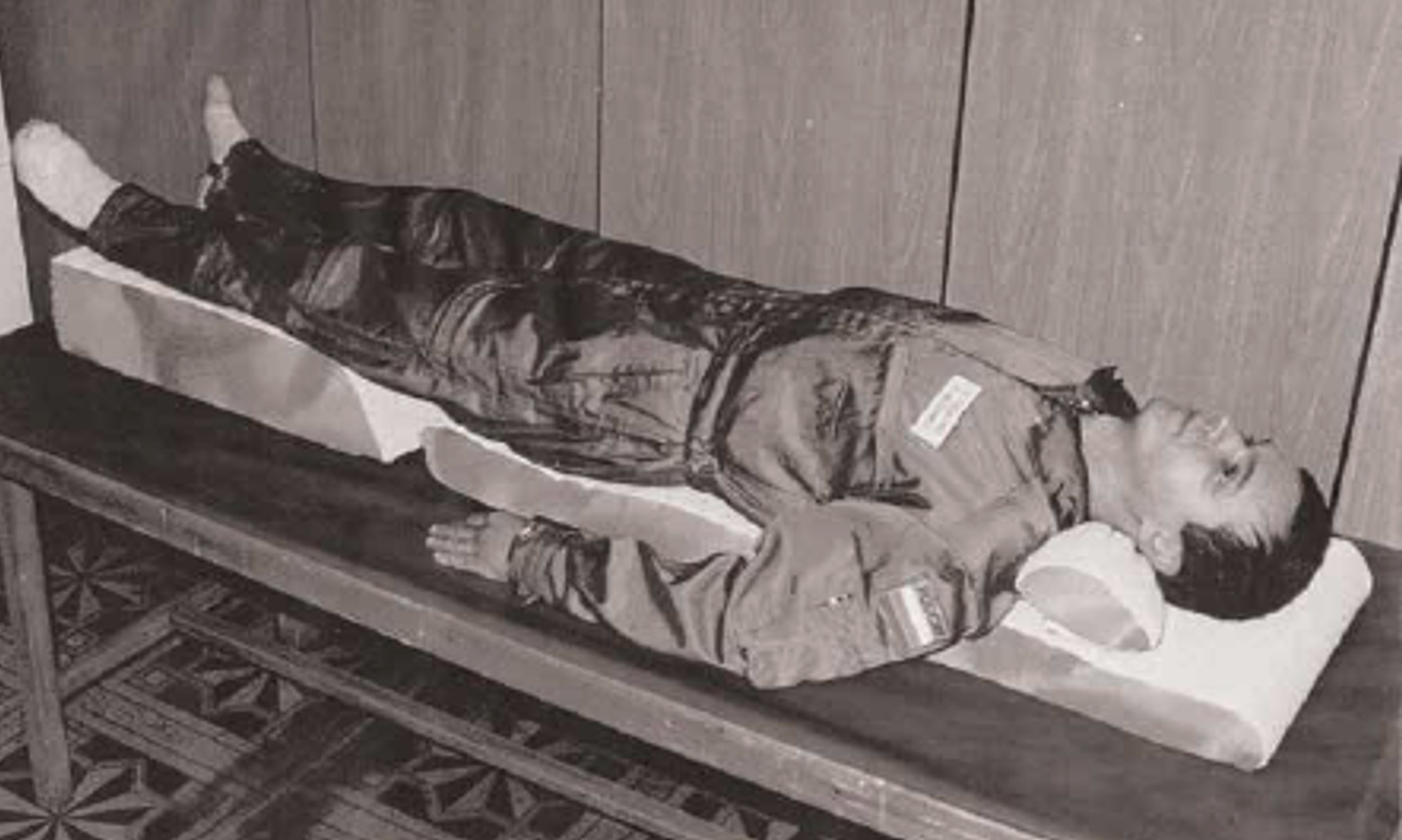 На рисунке представлена процедура Детензор-терапии у российского космонавта Юрия Гидзенко, совершившего 3 полета в космос на кораблях Союз и Дискавери, бывшего 328 суток на орбите и дважды выходившего в открытый космос.