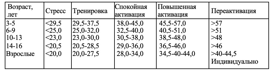 Таблица 1. Критерии адаптационных реакций по сигнальному показателю – процентному содержанию лимфоцитов в лейкоцитарной формуле