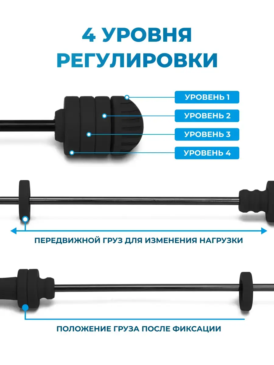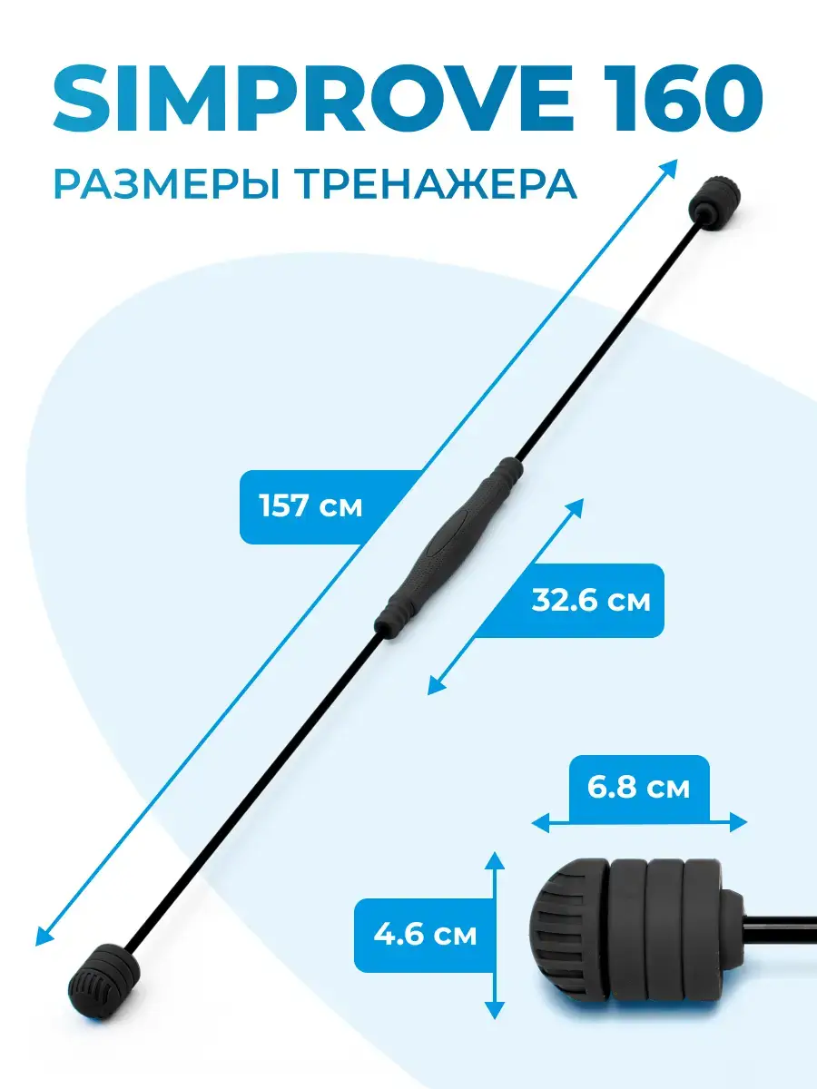 Тренажер Simprove 160 позволяет регулировать нагрузку на мышцы во время каждого упражнения. Это достигается за счет выбора одного из 4-х уровней силы вибрации шеста при изменении положения грузов на его концах или путем смены амплитуды выполняемых махов. Удобство использования обеспечивает ручка с антискользящим покрытием.