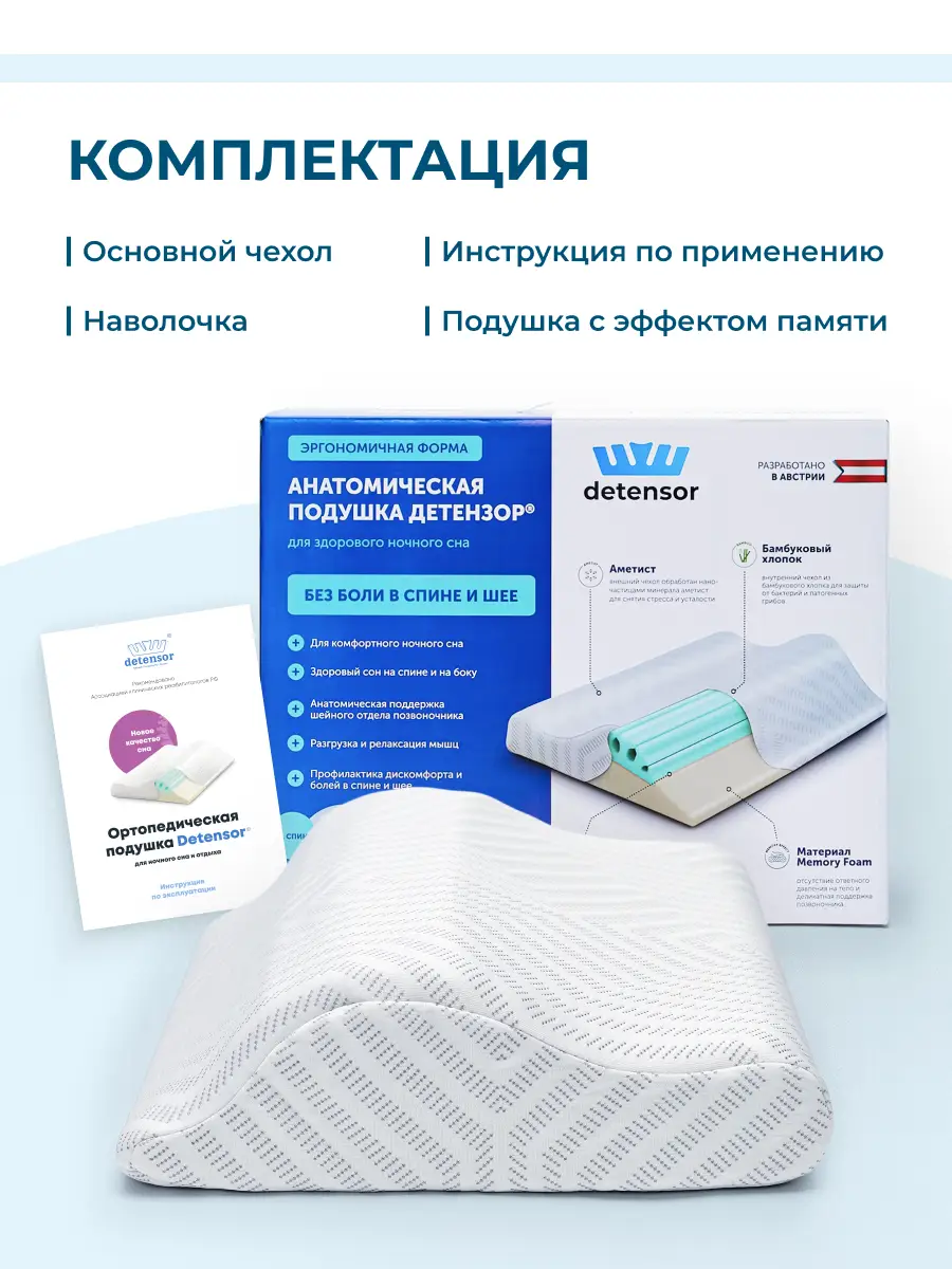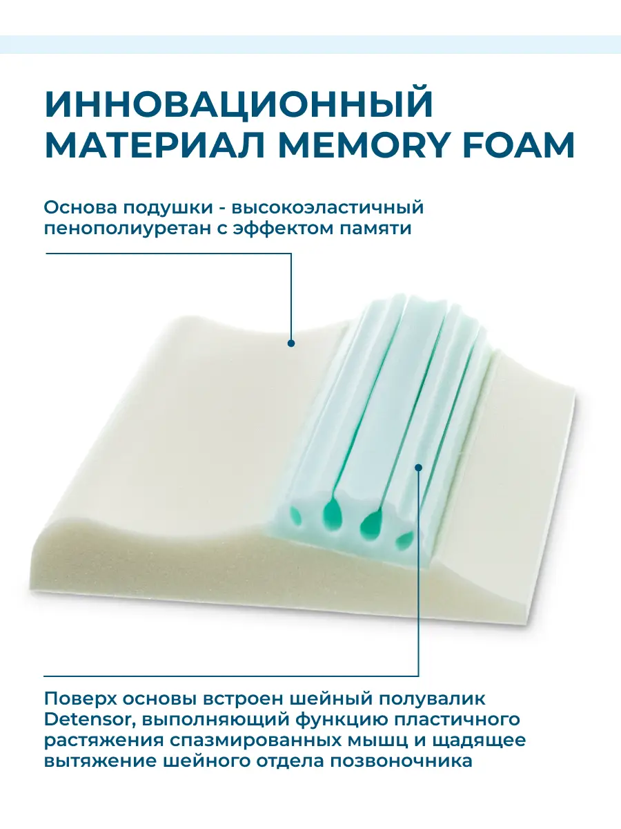 Испытайте непревзойденное удобство - ортопедическая подушка Detensor с эффектом памяти.
