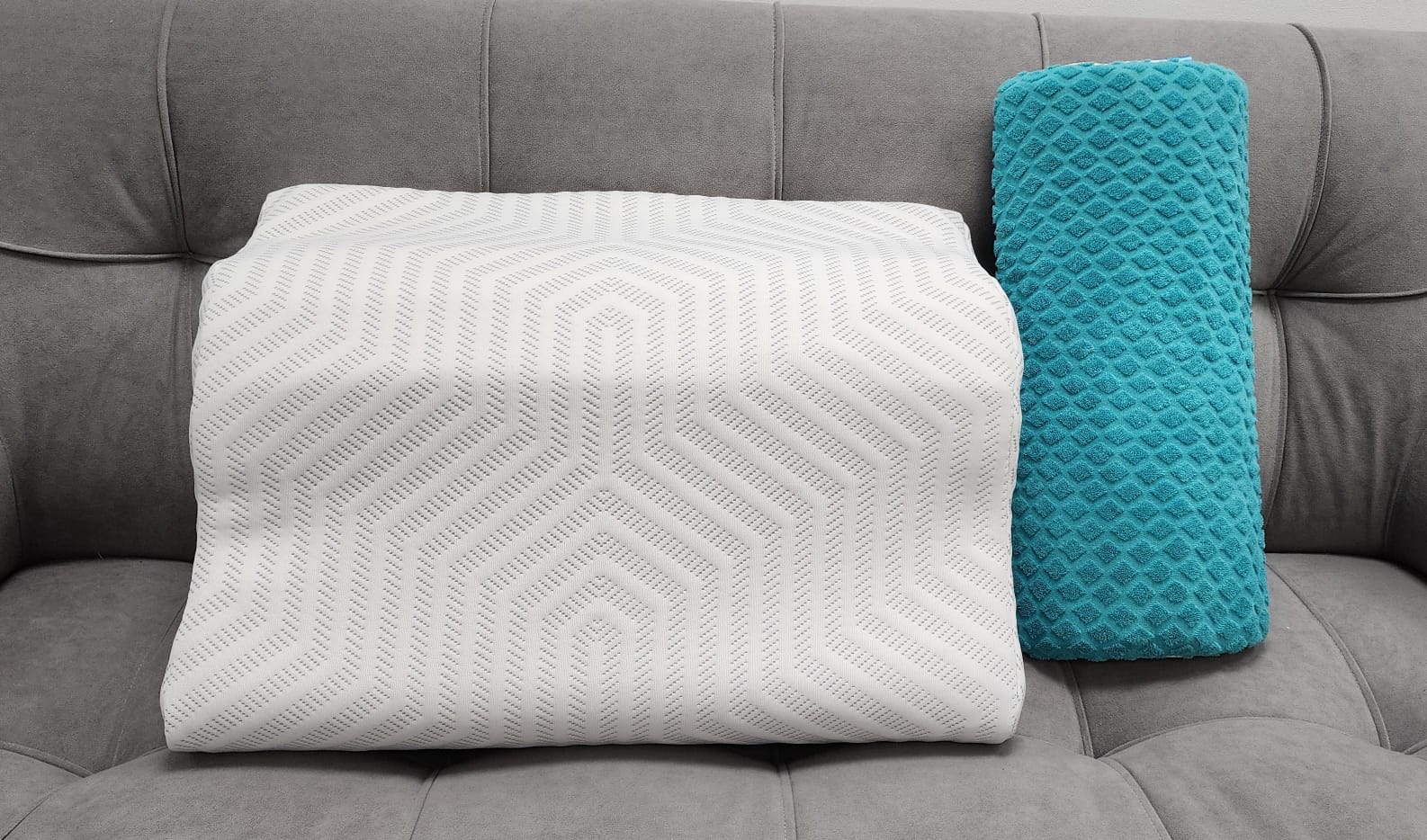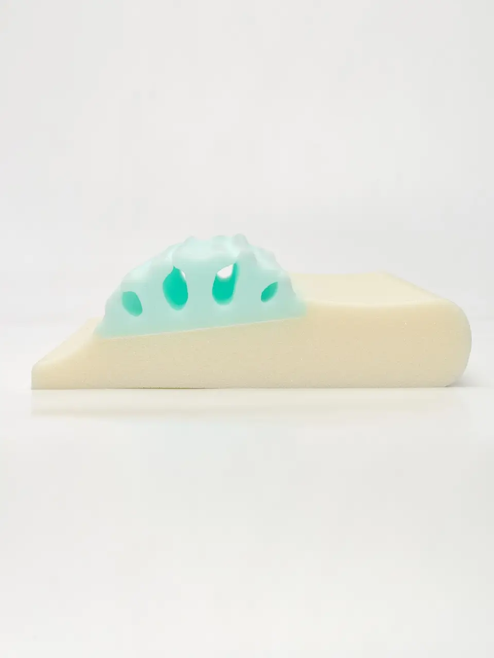 Пена в шейном валике очень мягкая, без эффекта памяти, работает как пружинка, поддерживающая вашу шею. Пена в остальной части подушки может показаться слишком плотной, но она с ощутимым эффектом памяти, в течении 10-20 секунд, голова просядет в пену и будет очень комфортно. За счет этой неподатливости пены, голова лучше фиксируется в одном положении и мышцы шеи лучше расслабляются во сне.