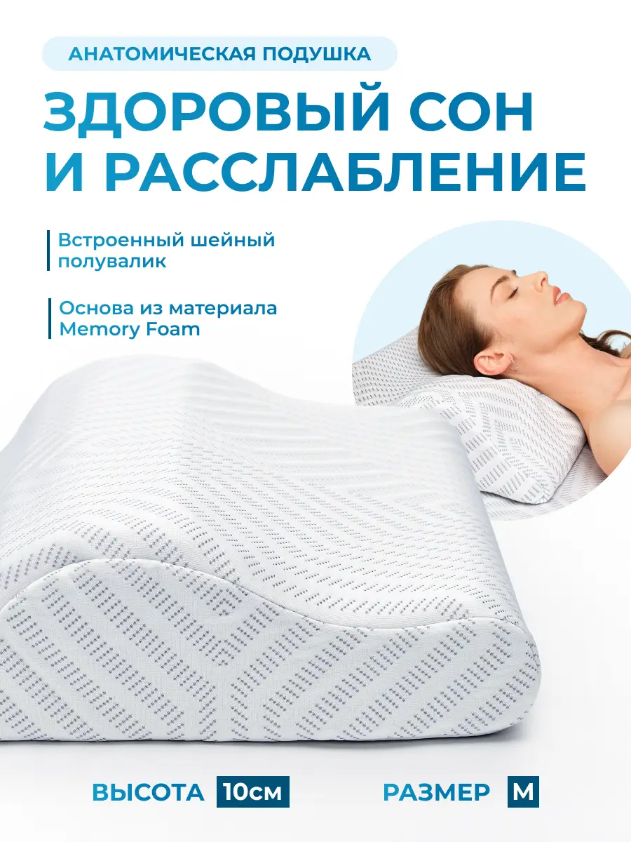 После беременности очень болела шея, не могла спать на обычной подушке. Решила купить анатомическую именно с упором на шейный отдел. Эта супер удобная подушка, теперь перед сном прям чувствую расслабление всех мышц и как моя шея и позвоночник говорят мне спасибо. Ещё очень радует эффект памяти, реально растворяешься в подушке. Всем рекомендую