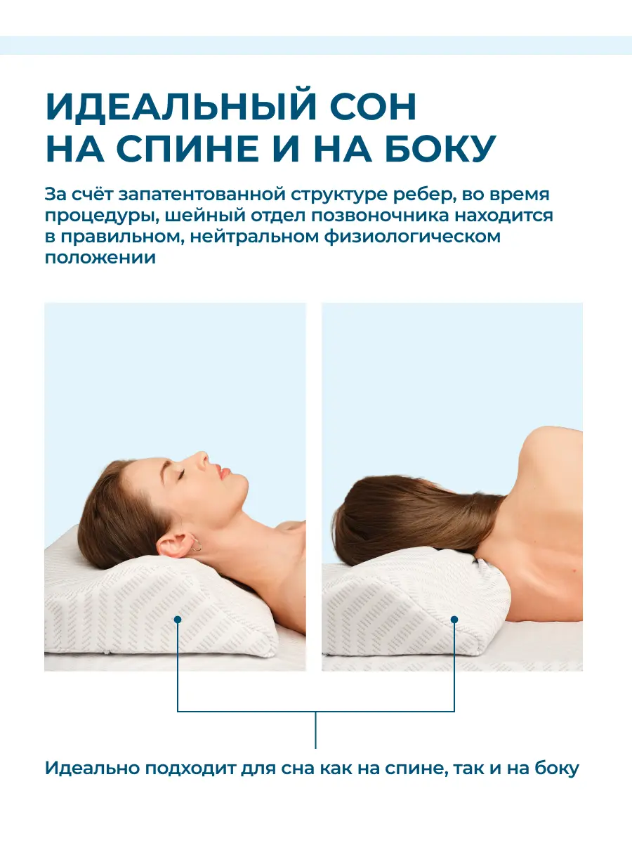 Для максимального эффекта разместите подушку так, чтобы валик оказался под шеей. Подушка идеально подходит для сна на спине и на боку. Уникальная структура ребер помогает поддерживать правильное положение шейного отдела позвоночника, что делает ваш сон не только комфортным, но и полезным для здоровья.