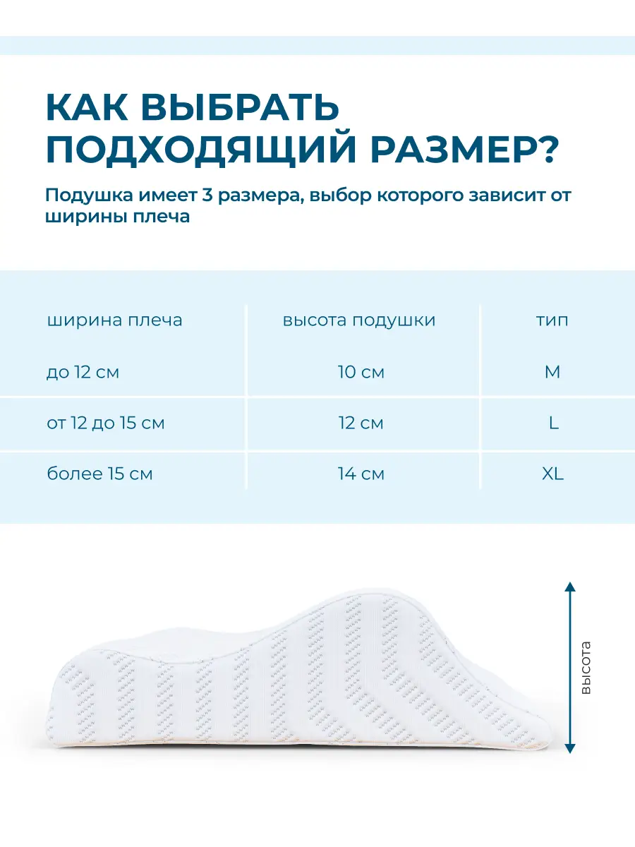 ширина плеча высота подушки тип